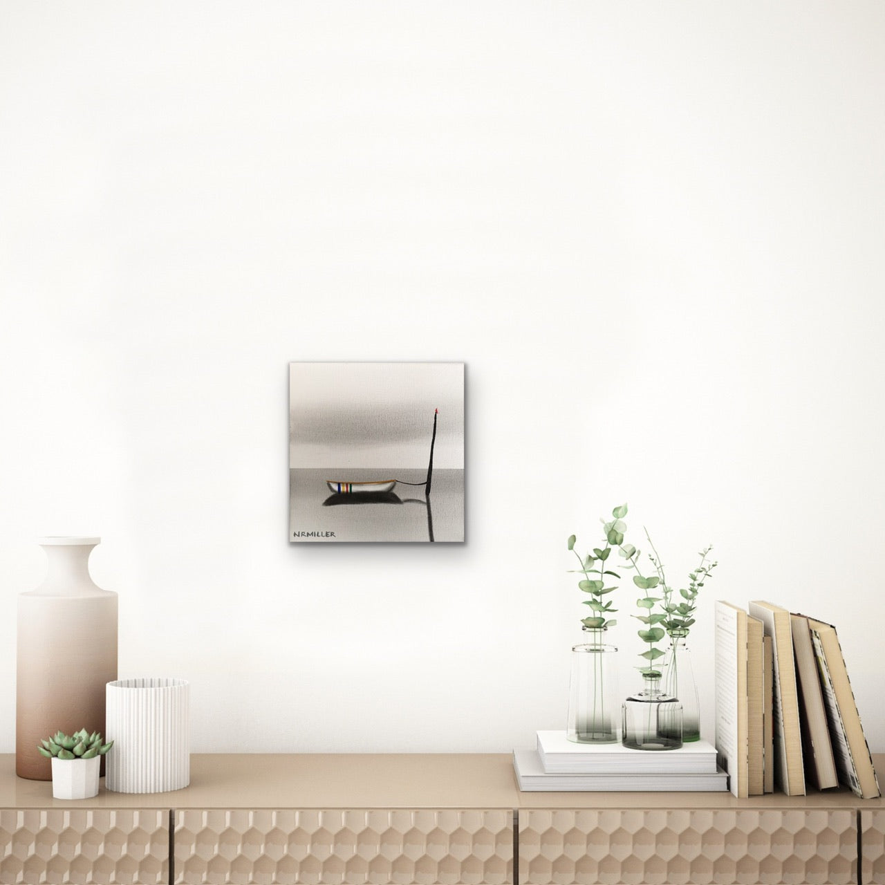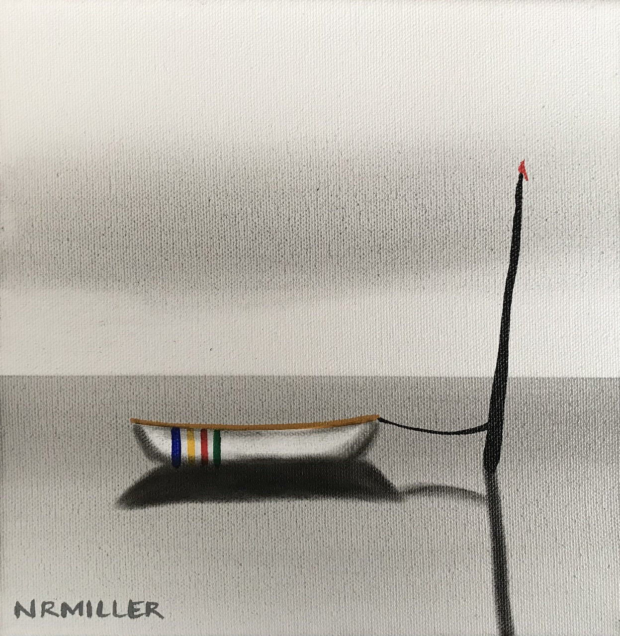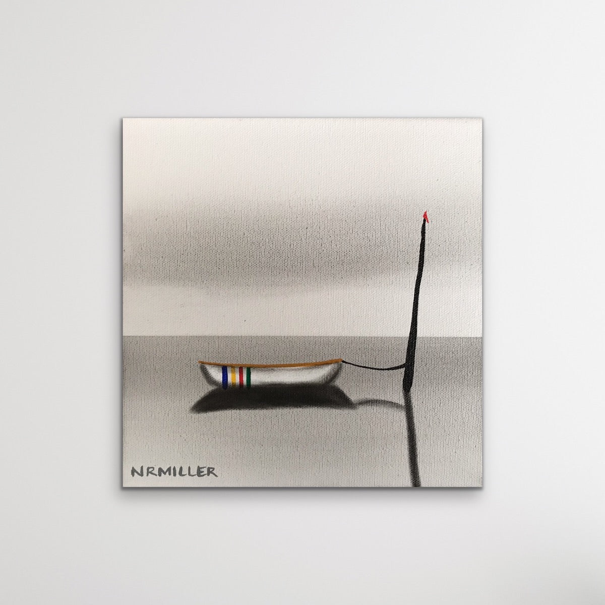 Original Painting. Mixed Media (Charcoal, soot, acrylic) on gallery wrapped canvas with sides painted black. Sealed with UV protectant varnish. Signed, named and dated on the back. Special care instructions on the back. Self levelling bar, ready to hang. 8” H x 8” W x 1.75” D