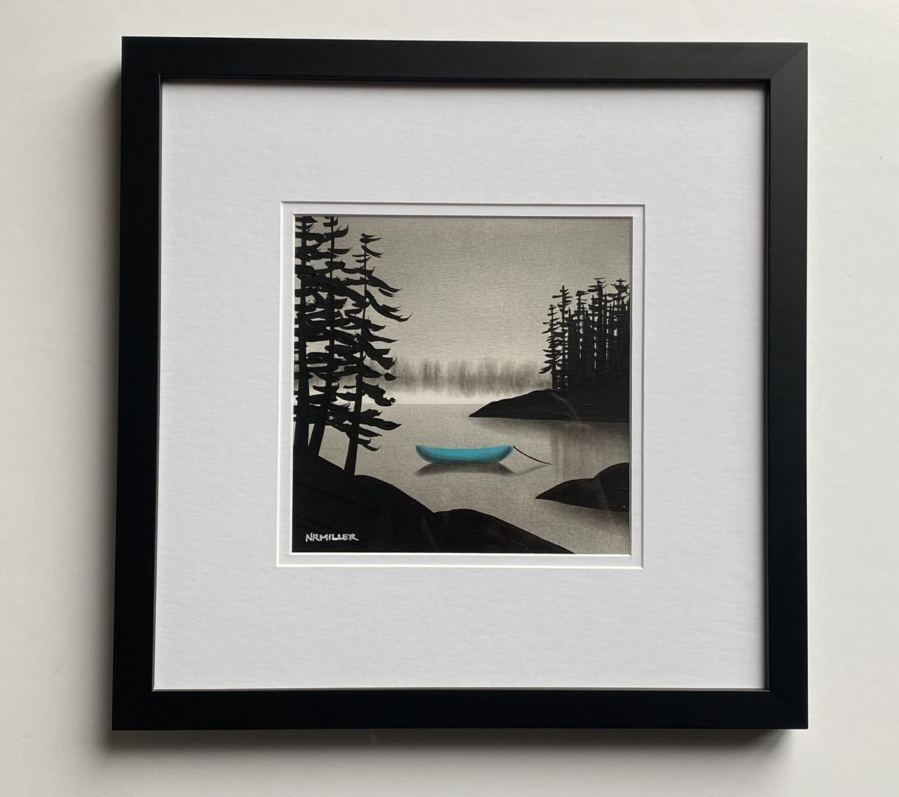 The Original Painting. Mixed Media (Charcoal, soot, acrylic) on archival art paper. 7.5” painting framed to 14.5” Sealed with UV protectant varnish. Signed, named and dated on the back. Professionally framed. Wired- ready to hang.